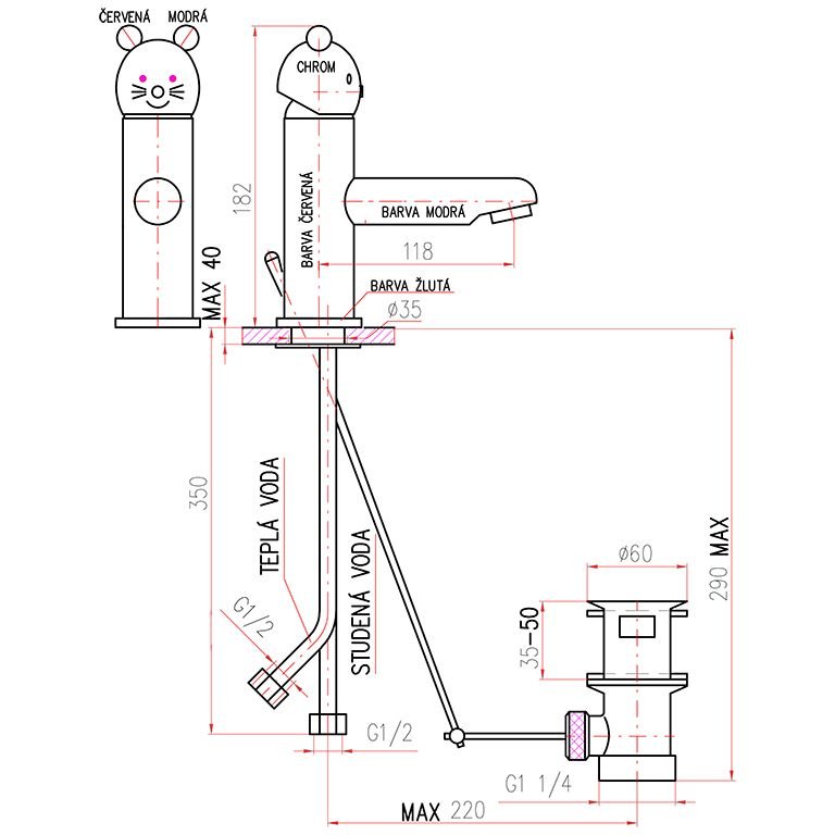 Смеситель для раковины Rav Slezak (Рав Слезак) Seina Junior SE326.5, красный