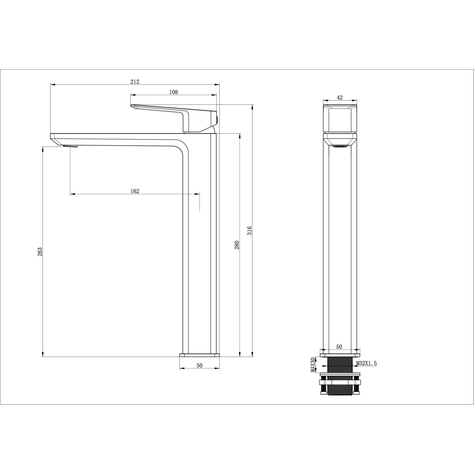 Смеситель для раковины высокий Wonzon and Woghand (Вонзон И Вогханд) , Темный графит WW-88239011-BGM