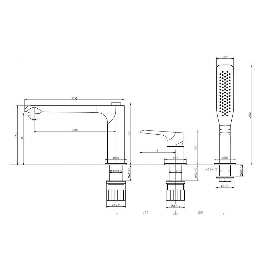 Смеситель для ванн, для душа BelBagno (Бельбагно) Delta Сатин (DEL-BVD3-IN)