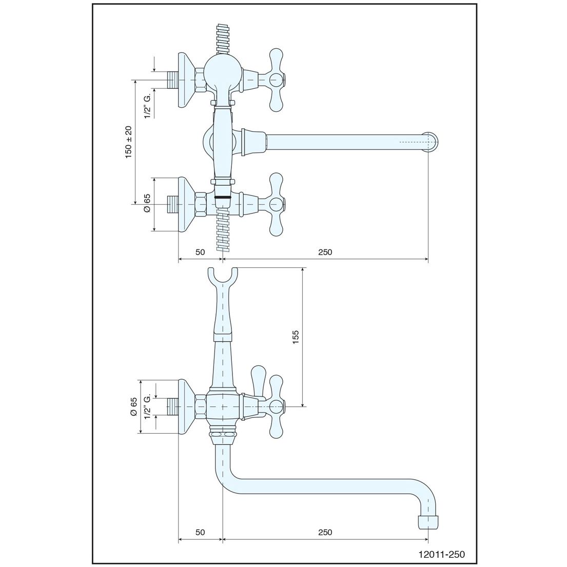 Смеситель для ванной Emmevi (Эммеви) Deco Classic, с длинным изливом (25см) и ручным душем, цвет хром 12011СМ25/CR