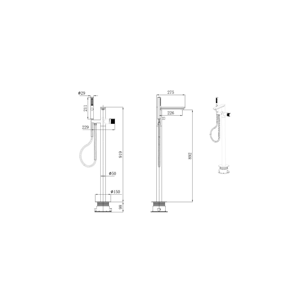 Высота излива (мм):892 p>