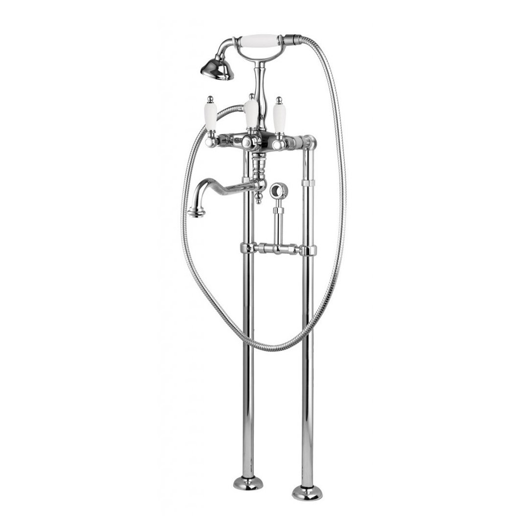 Напольный смеситель для ванны с поворотным изливом с кронштейном для слива-перелива, ручным душем и шлангом 150 см