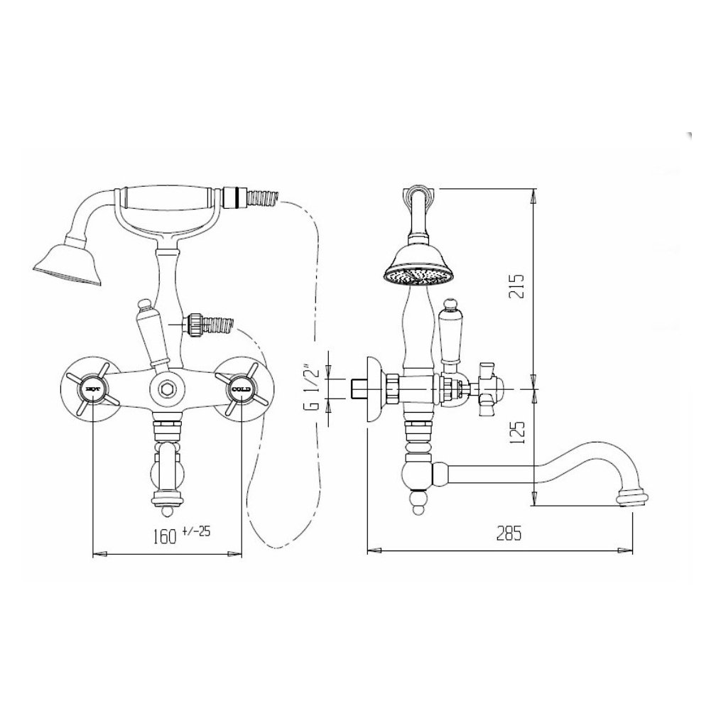 Оснащение: душевой шланг, душевая лейка, дивертор, универсальный установочный комплект