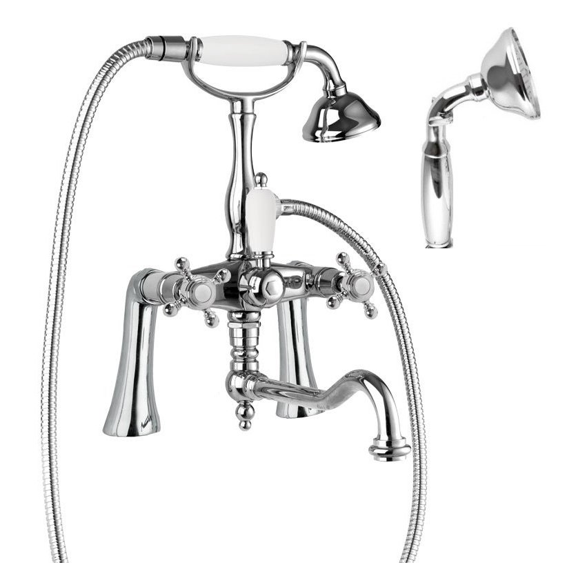 Смеситель на борт ванны с поворотным изливом и ручным душем, цвет хром