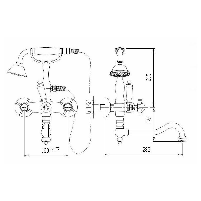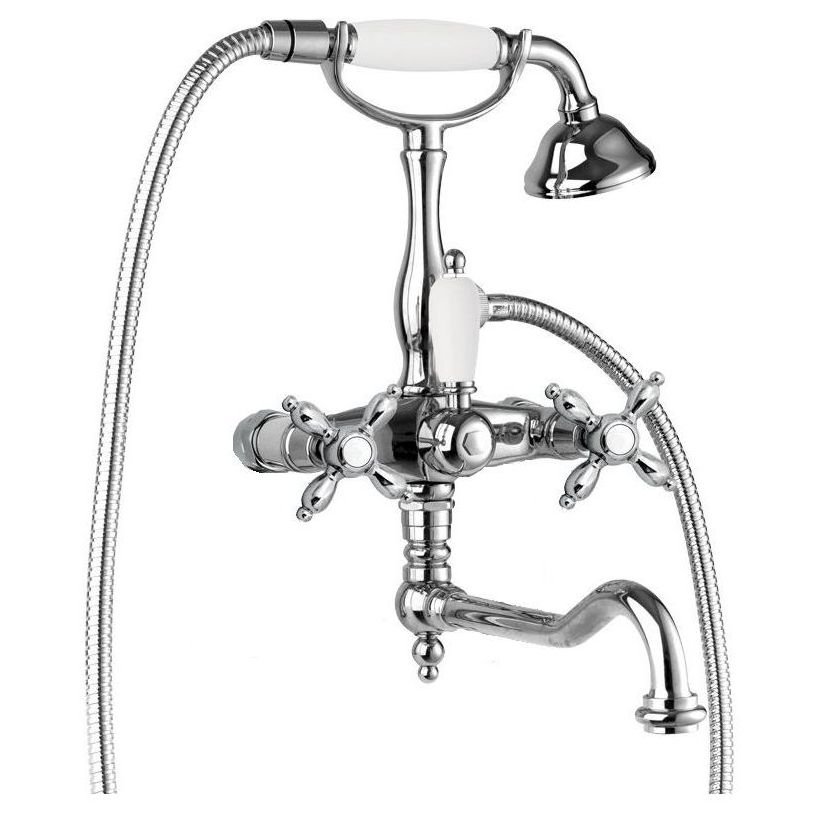 Смеситель для ванны Cezares (Цезарис) Nostalgia хром, ручка ручного душа белая (NOSTALGIA-VDF-01-Bi)