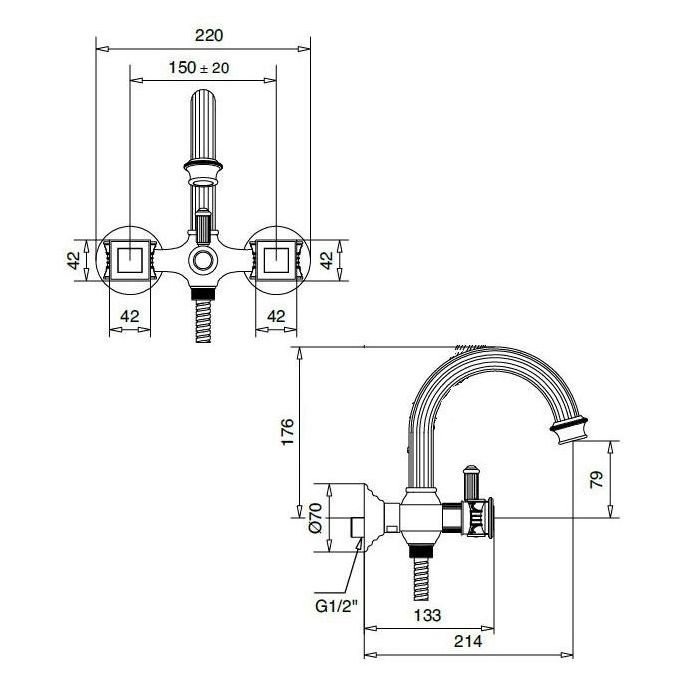 Смеситель для ванны Cezares (Цезарис) Olimp хром, ручки хром (OLIMP-VD-01-O)