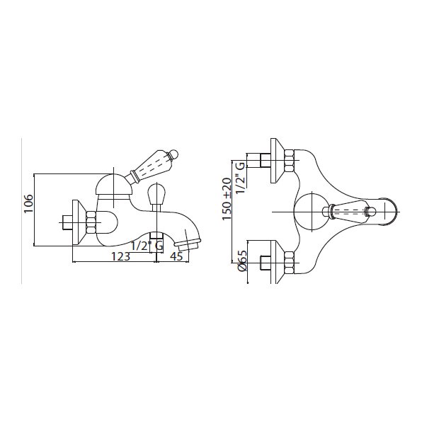 Смеситель для ванны и душа однорычажный, исполнение золото, без шланга и ручного душа