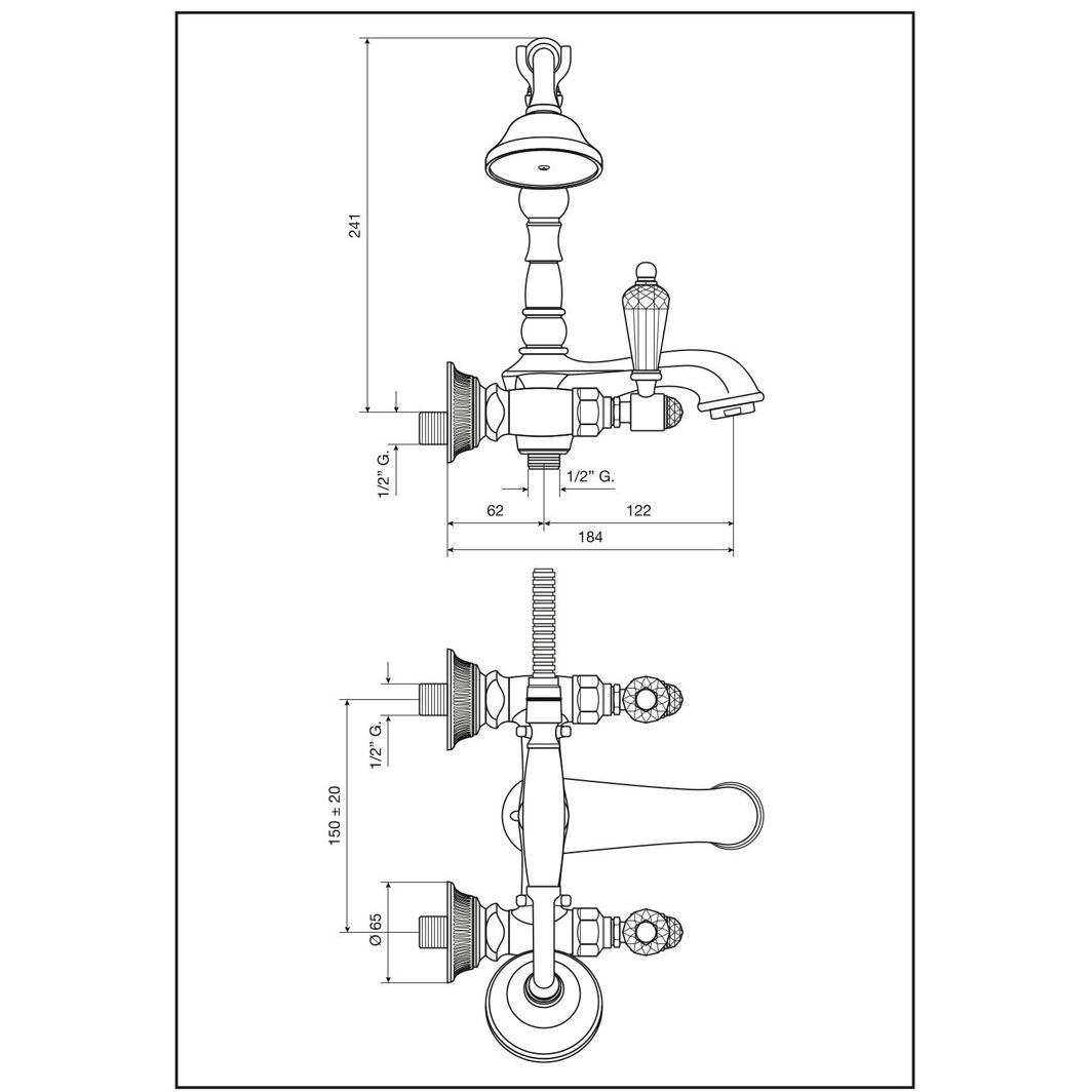 Emmevi The One Atena, смеситель с ручным душем для ванны. Прозрачные кристаллы Swarovski, цвет золото