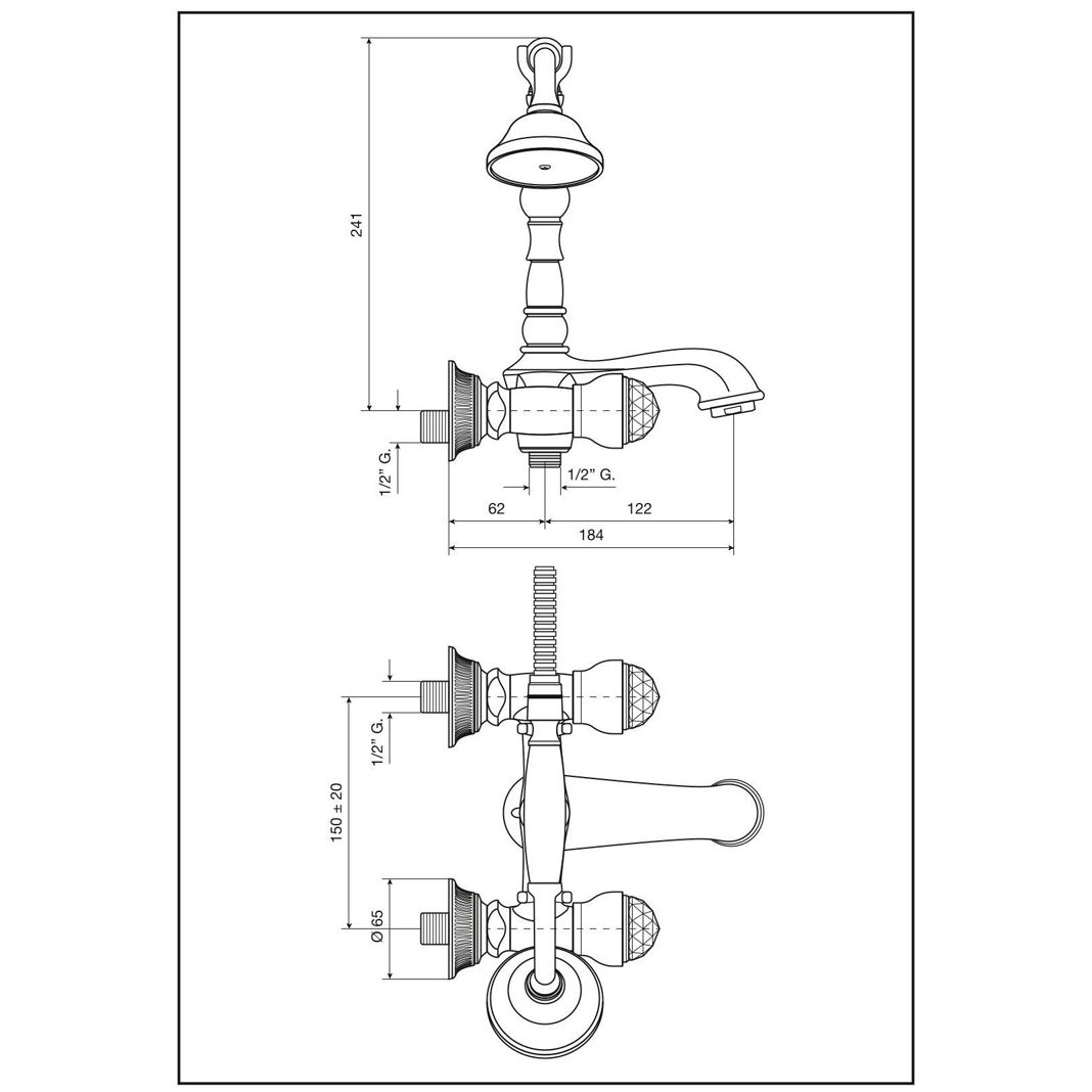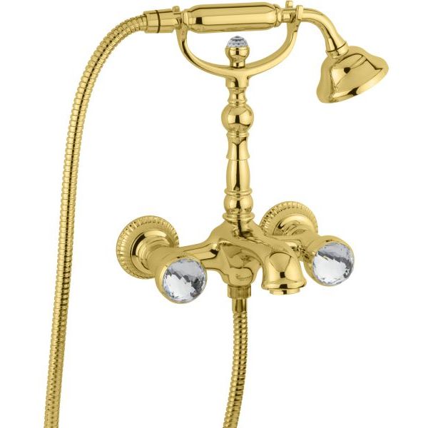 Смеситель для ванны Emmevi (Эммеви) The One Leda, металлические ручки + большие прозрачные кристаллы, цвет золото 98011VSW/OR