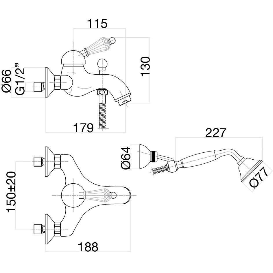 Смеситель для ванны Fiore (Фиоре) Imperial-Sky (Swarovski) 82ZZ5104, бронза