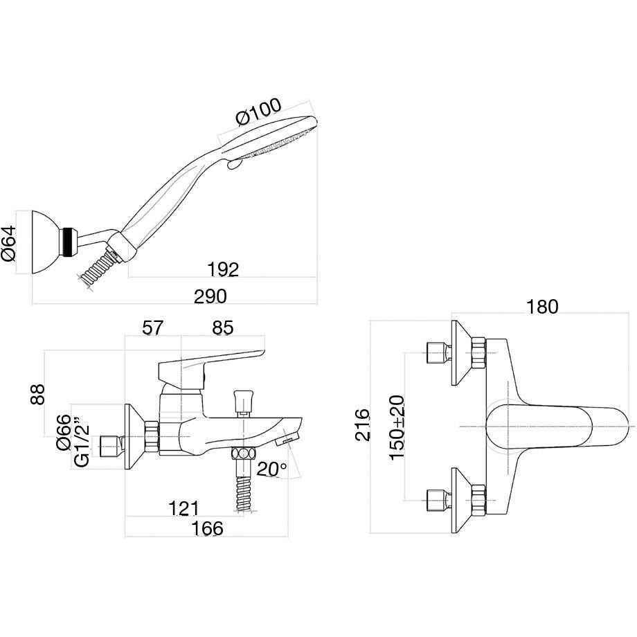Комплектация:смеситель, душевая лейка, держатель лейки, шланг p>