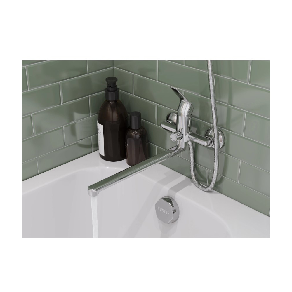 Смеситель Santek Венга для ванны с душем, с длинным изливом, с аксессуарами, хром (артикул WH5A12003C001) представляет собой стильное и функциональное решение для вашей ванной комнаты.