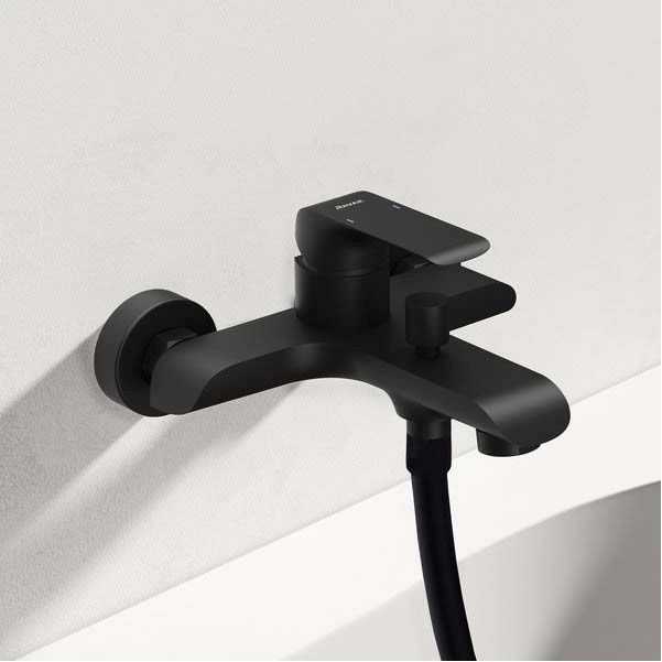 Настенный смеситель для ванны Flat black подходит для любой ванны, расположенной у стены. Четкое управление рычагом батареи обеспечивает идеальное регулирование тока и температуры воды. Качественный переключатель с фиксатором гарантирует удобное переключение потока воды между наполнением ванны и душем без произвольного отключения даже при изменении давления воды. Матовые черные смесители можно комбинировать с любым другим цветом и найти применение в самых разных стилях ванной комнаты.