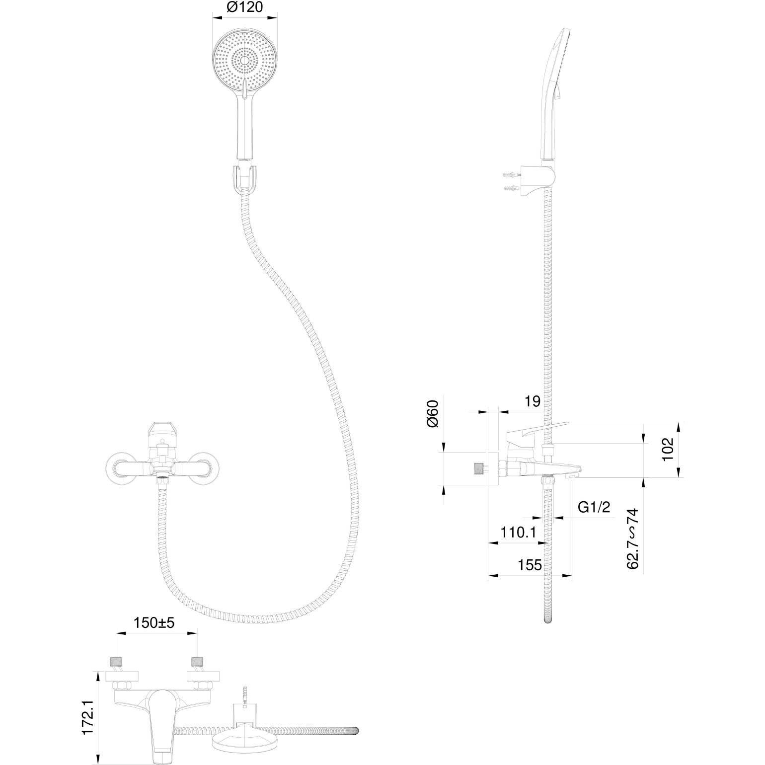 Длина шланга, см:150 p>