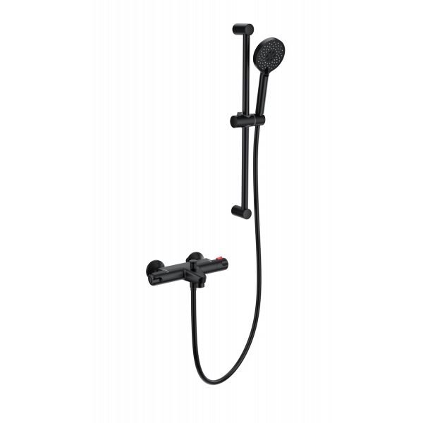 Смеситель для ванны с душевым гарнитуром и термостатом WONZON & WOGHAND, Черный матовый (WW-C2001-A-MB)