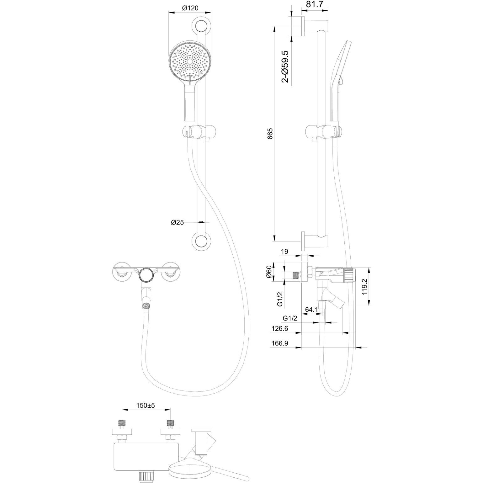 Смеситель для ванны с душевым гарнитуром WONZON & WOGHAND, Хром (WW-FE05L222-CR)