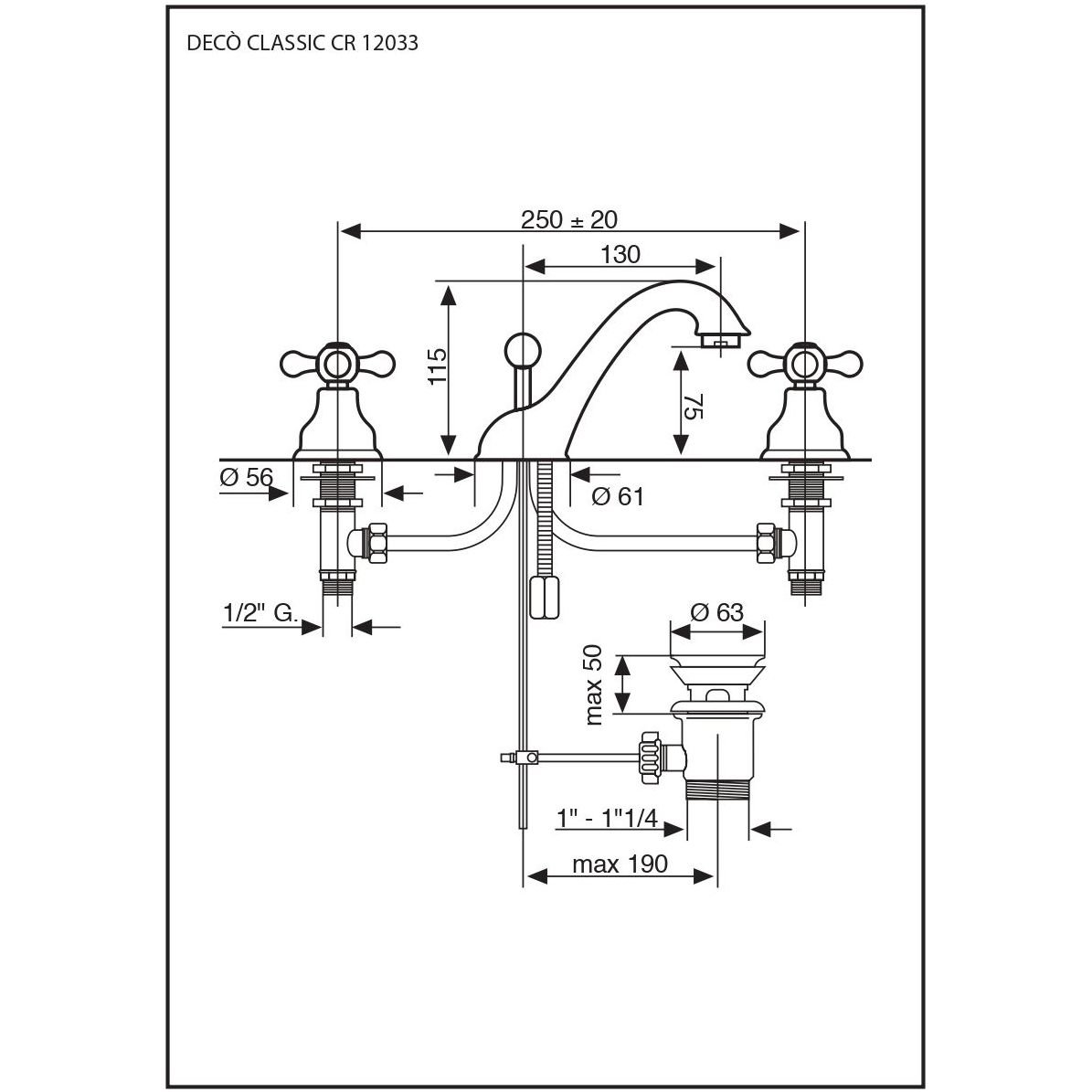 Смеситель Emmevi (Эммеви) Deco Classic, двухвентильный, для раковины, излив 13 см, на 3 отверстия, с донным клапаном, золото, 12033/OR