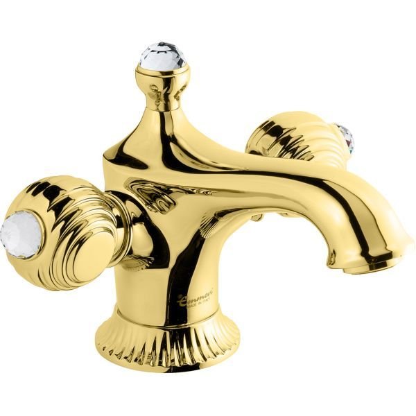 Смеситель Emmevi (Эммеви) The One Cloe, металлические ручки + прозрачные кристаллы Swarovski, золото, 98003SW/OR