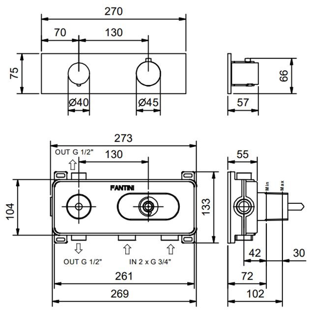 Fantini NOSTROMO Термостат. встраив. смес-ль для душа, 2 потребителя, 3/4 наруж. часть, цвет: черный матовый