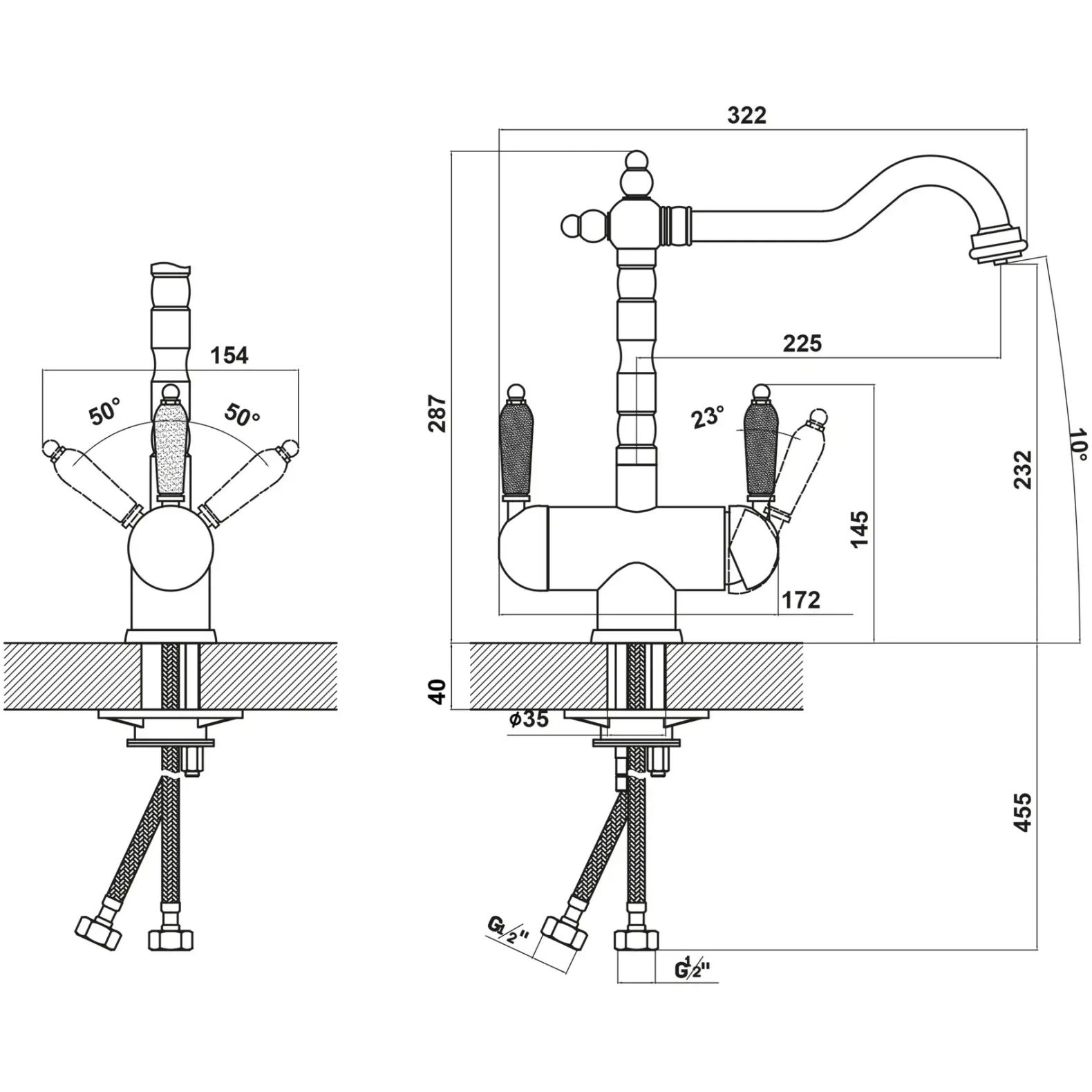 Стандарт подводки:1/2 дюйма p>
