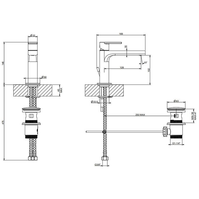 Смеситель Gessi (Гесси) Emporio Via manzoni для раковины, на 1 отверстие, с донным клапаном, цвет: хром 38601№ 031