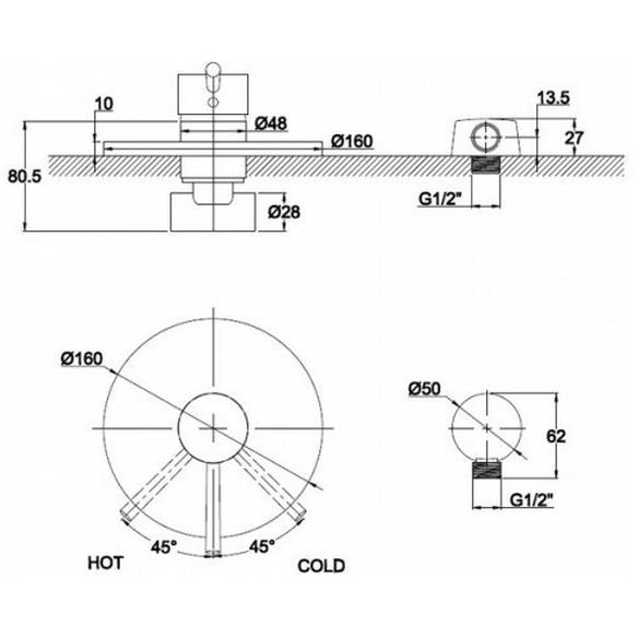 Смеситель Kaiser (Кайзер) Merkur скрытого монтажа с душем хром 26317