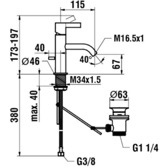 Смеситель Laufen (Лауфен) Kartell для раковины, на 1 отверстие, без донного клапана, излив 115 мм, цвет: нержавеющая сталь (РVD) 3.1133.1.090.100.1