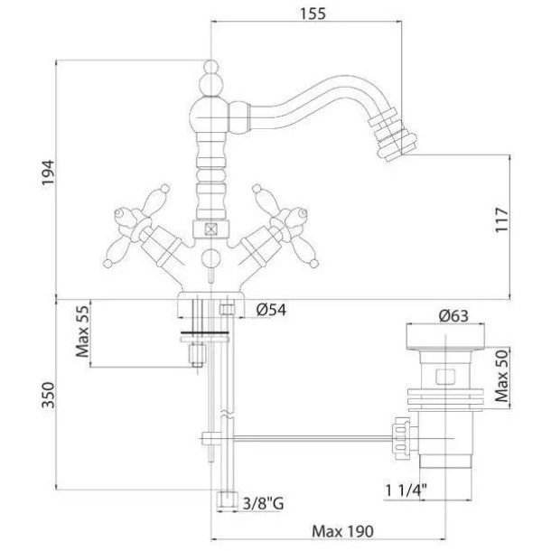 Смеситель на биде Cezares (Цезарис) с донным клапаном хром, ручки хром NOSTALGIA-BS2-01