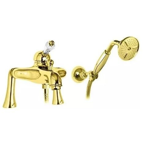 Смеситель на борт ванной Cezares (Цезарис) однорычажный в комплекте с ручным душем, золото, Svarovski VINTAGE-PBVM-03/24-Sw