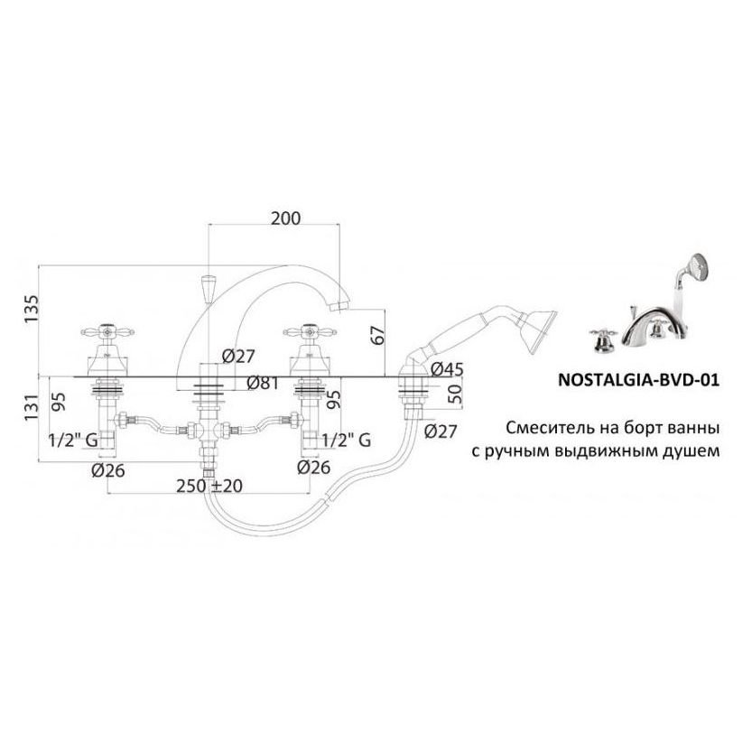 Смеситель на борт ванны Cezares (Цезарис) Nostalgia ручка ручного душа белая (NOSTALGIA-BVD-03/24-Bi)