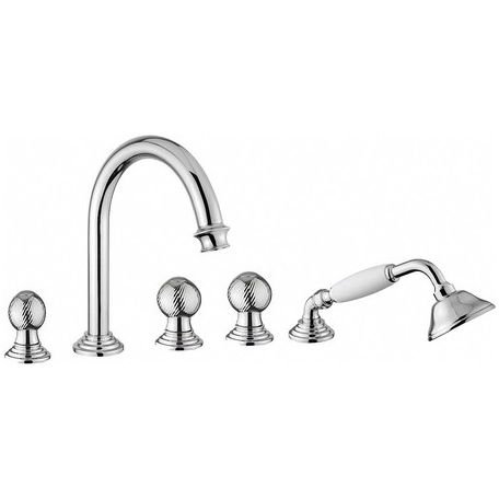 Смеситель на борт ванны Cezares (Цезарис) с выдвижным душем и переключателем, исполнение хром, ручки Шар APHRODITE-BVD-01-M