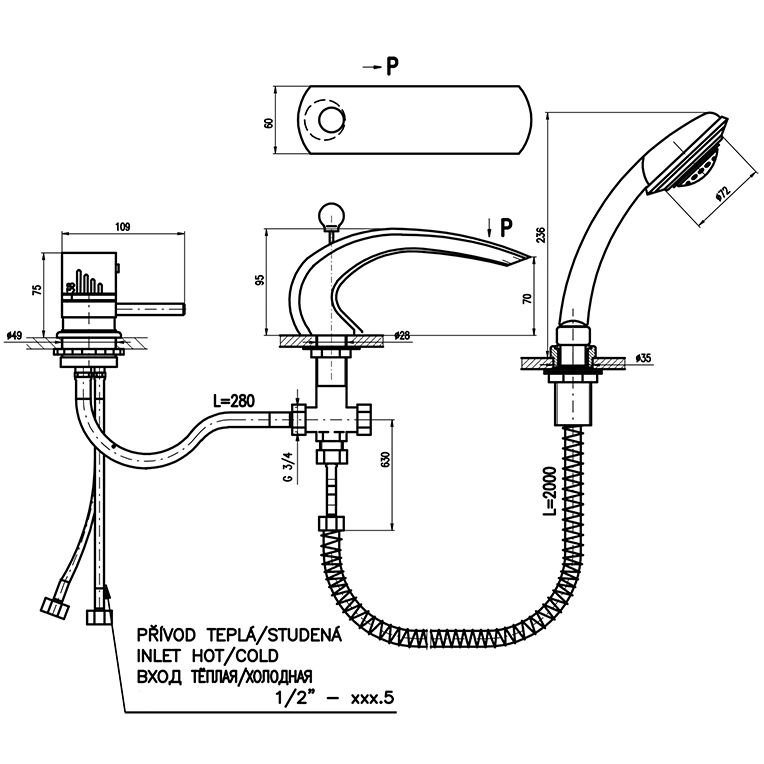 Смеситель на борт ванны Rav Slezak Dunaj Termostat DT272.5SZ