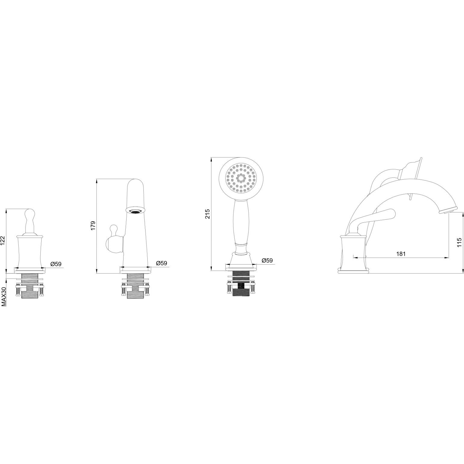 Смеситель на борт ванны Wonzon and Woghand (Вонзон И Вогханд) , Черный матовый WW-88659008-MB