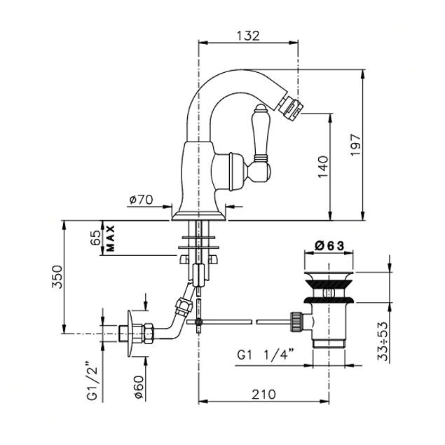 Смеситель Nicolazzi (Николации) El Capitan для биде, на 1 отверстие, с донным клапаном, излив: 132 мм, цвет: хром 3455CR75C