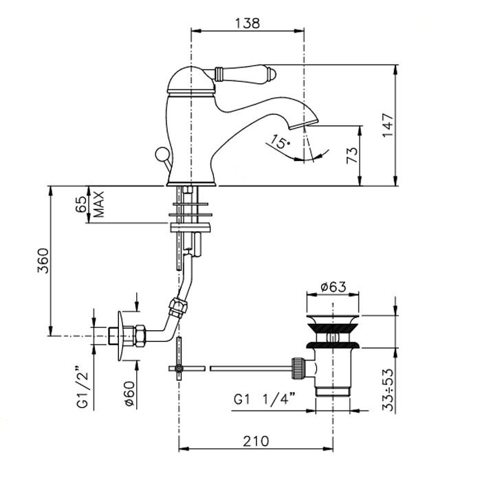 Смеситель Nicolazzi (Николации) El Capitan для раковины однорычажный, с донным клапаном, цвет: хром 3402CR75