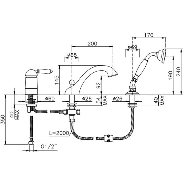 Смеситель Nicolazzi (Николации) El Capitan на борт ванны на 3 отверстия, с изливом 20 см и ручным душем, цвет: Вrоnzе Рlаtеd 3414BZ75