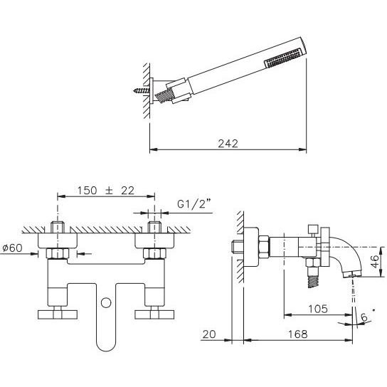 Смеситель Nicolazzi (Николации) Mac Kinley 05 для ванны с двумя ручками, с переключателем ванна/душ, + комплект руч. душа, цвет: хром 2202CR29