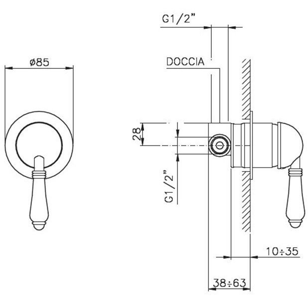 Смеситель Nicolazzi (Николации) Petit Mont Blanc для душа, встраиваемый, 1 источник, внешняя часть, ручки белая керамика, цвет: Вrоnzе Рlаtеd 3406MBZ76