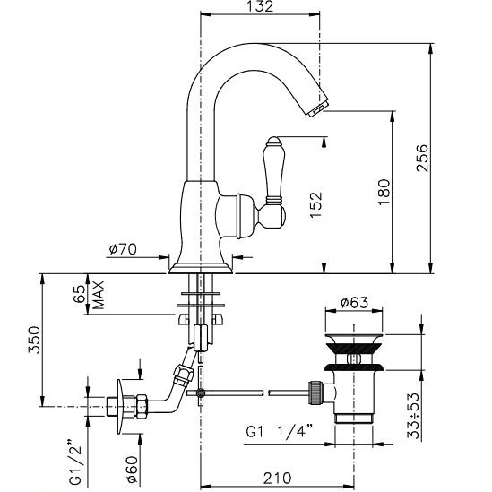 Nicolazzi P.m. Blanc Смеситель для раковины однорычажный, с донным клапаном, ручки белая керамика, цвет: хром
