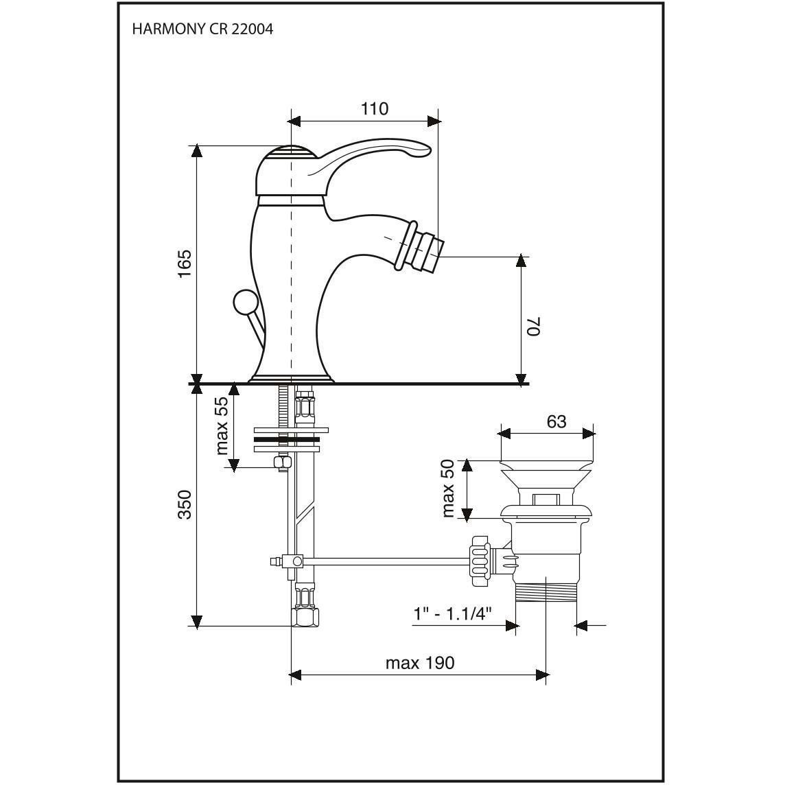 Смеситель однорычажный Emmevi (Эммеви) Harmony, с донным клапаном, бронза, 22004/BR