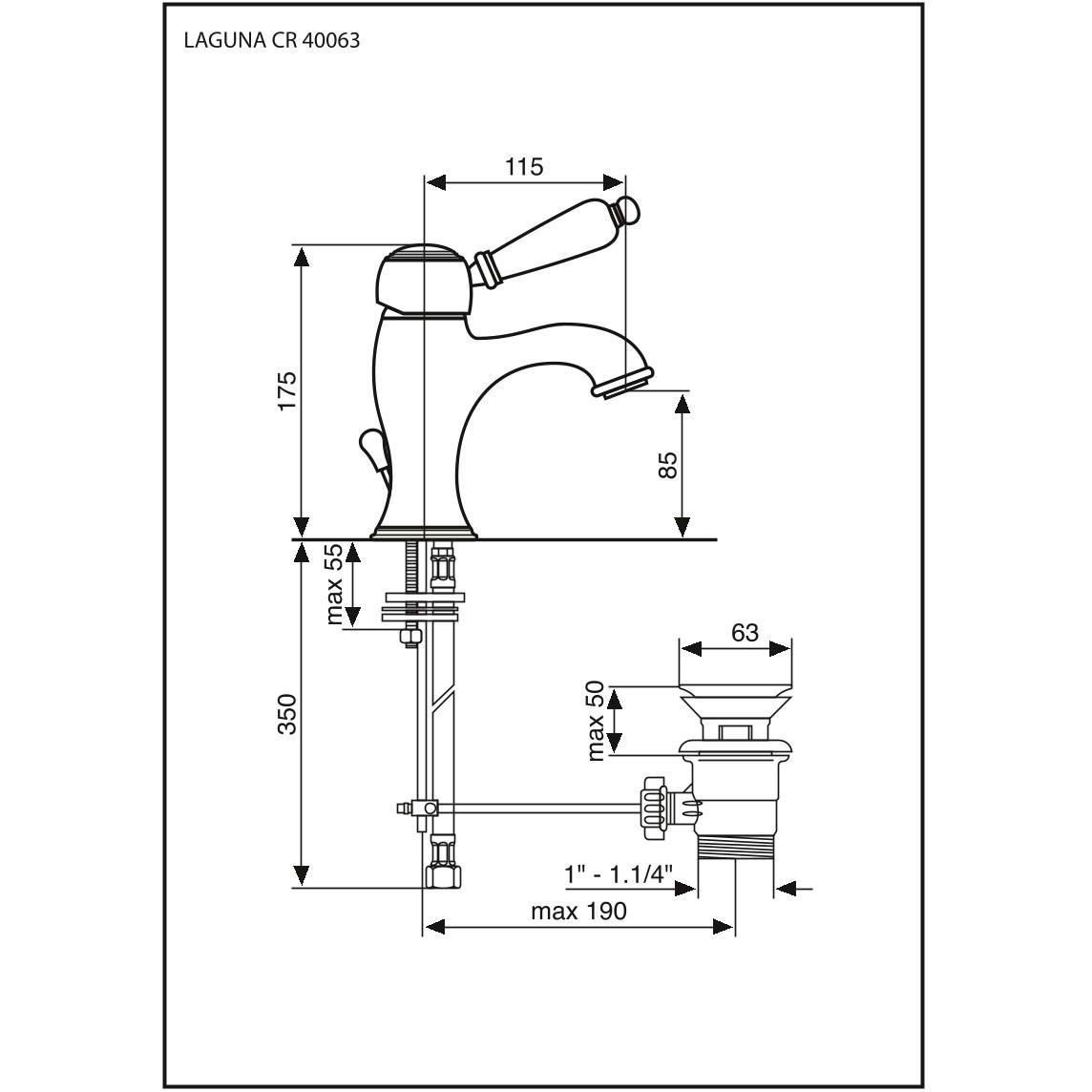Смеситель однорычажный Emmevi (Эммеви) Laguna, излив 11,5 см, с донным клапаном, хром, 40063/CR