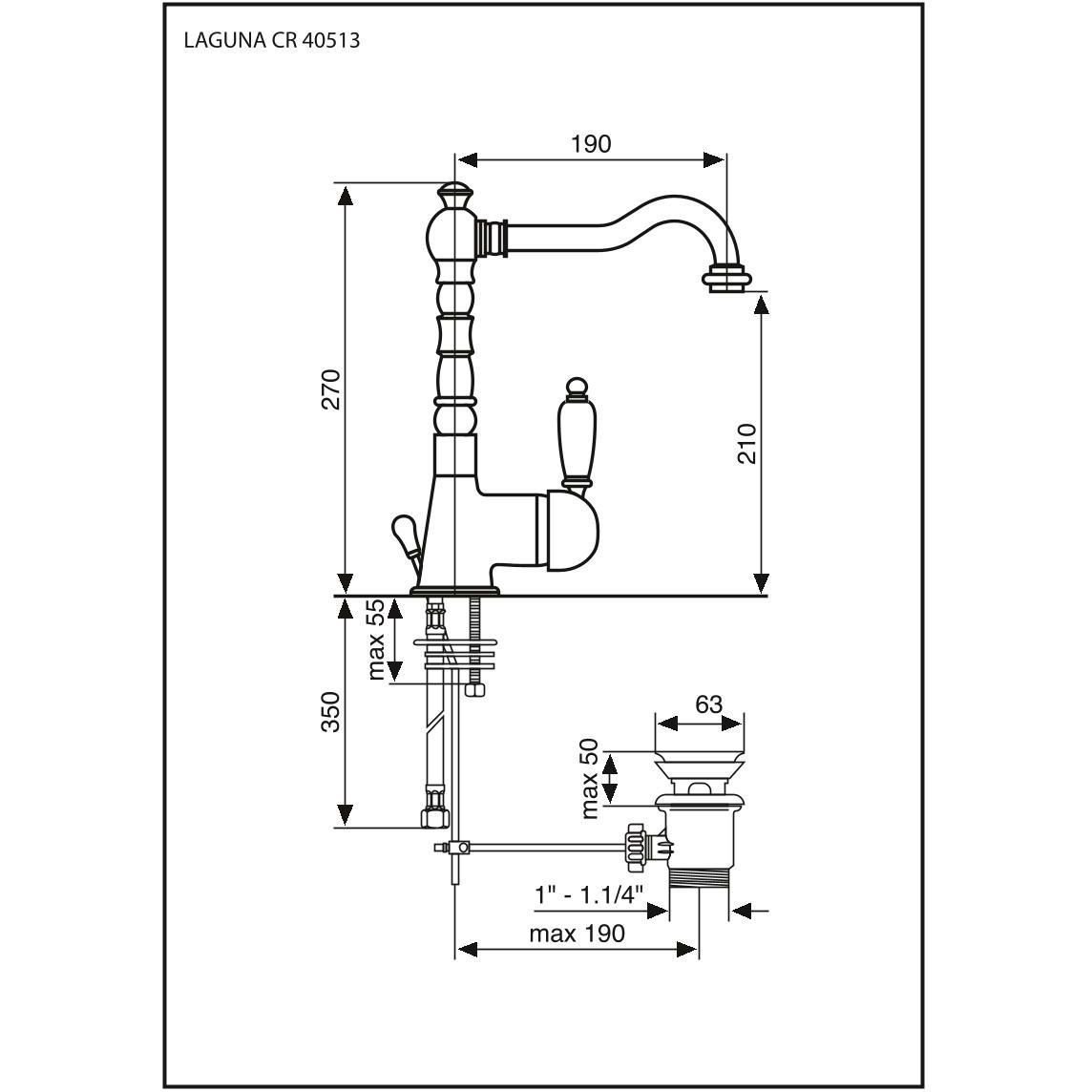 Смеситель однорычажный Emmevi (Эммеви) Laguna, излив 19 см, с донным клапаном, хром, 40513/CR