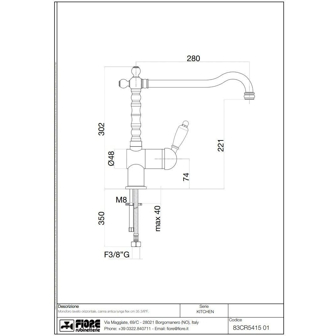 Смеситель однорычажный Fiore (Фиоре) Imperiale, для кухни (излив 28 см), без донного клапана, хром, 83CR5415