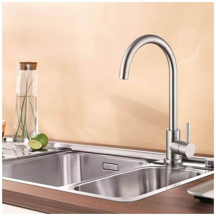 Смеситель для кухни Olives BALEAR нержавеющая сталь 13435-1BL - это выскоий однорычажный смеситель, изготовленный из высококачественной нержавеющей стали SUS 304, исключительно прочного материала, стойкого к износу и появлению ржавчины.
