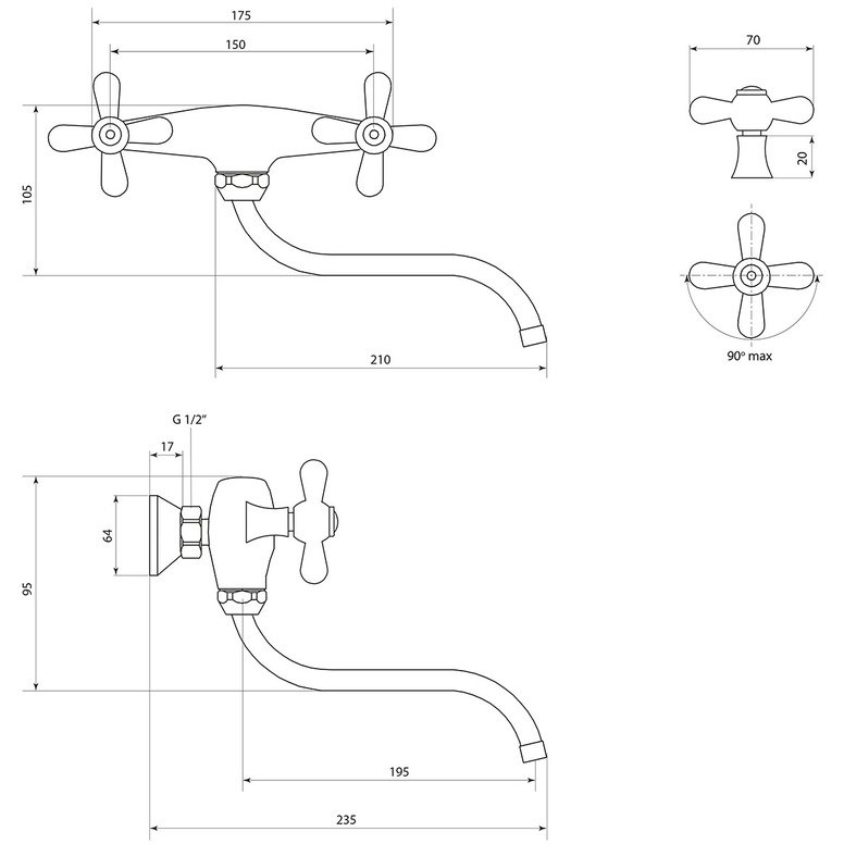 Смеситель Славен (Slaven) для кухни настенный Прораб О (СЛ-ДВ-О24) хром