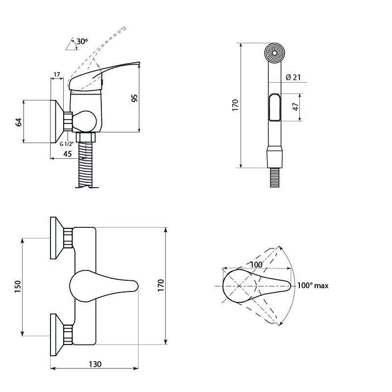 Комплектация:Монтажная группа для вертикального крепления: эксцентрики из анодированной стали – 2 шт., отражатели из нержавеющей стали хромированные – 2 шт.; Шланг душевой, L=1500 мм; Лейка гигиеническая однофункциональная; Керамический картридж 35 мм с углом поворота 100 градусов; Индивидуальная упаковка, обеспечивающая полную сохранность изделия; Документация на смеситель. p>