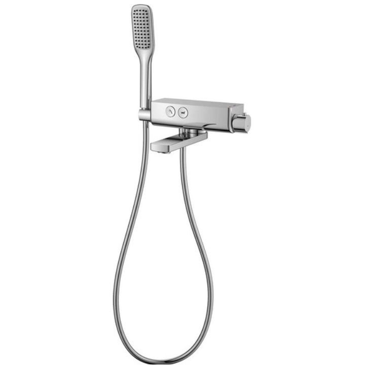 Смеситель термостатический для ванны и душа Cezares (Цезарис) с кнопочным переключением, в комплекте с ручным душем и шлангом, хром GLOBO-F-VD-TB-01