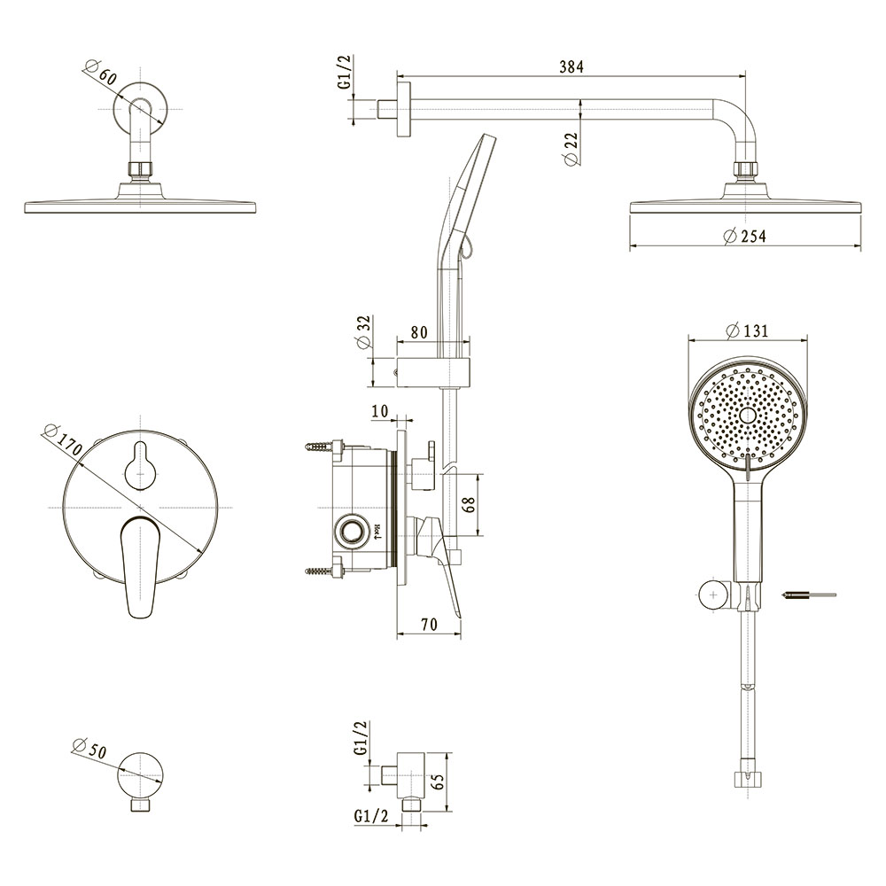 Свойства:скрытого монтажа, с тропическим душем, с ручным душем p>