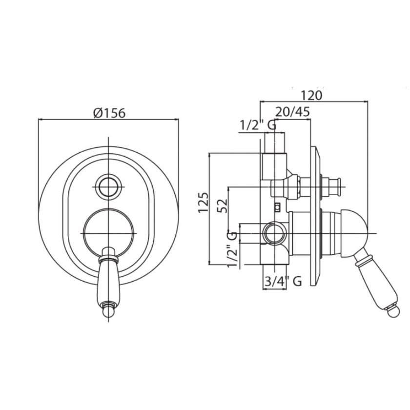 Встраиваемый однорычажный смеситель Cezares (Цезарис) для душа с переключателем, золото, ручка Swarovski VINTAGE-VDIM-03/24-Sw