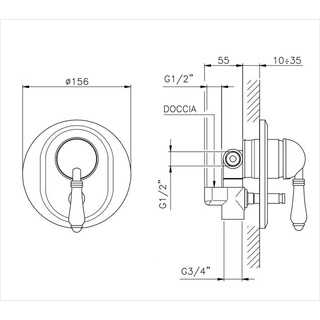 Встраиваемый смеситель Nicolazzi (Николации) Petit Mont Blanc для душа с переключением, 2 источника, ручки белая керамика, цвет: хром 3460CR76